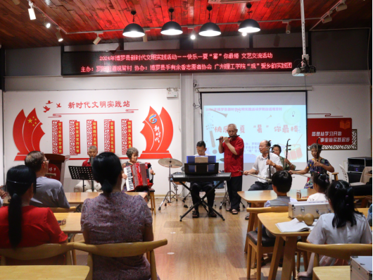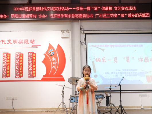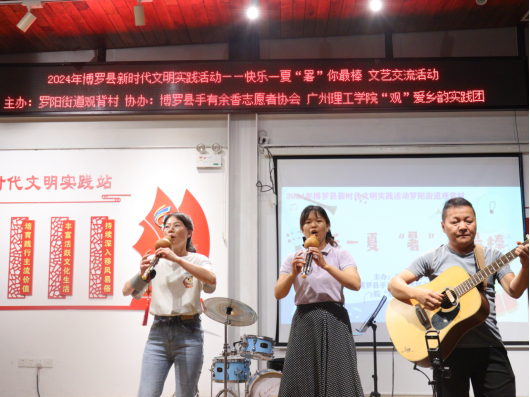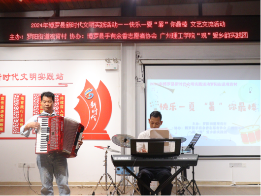 (通讯员:陈美梁)为响应百千万工程的号召,进一步丰富观背村人民群众精神文化生活,提升观背村的文化软实力,为观背村发展营造良好的文化氛围,2024年7月17日晚,由罗阳街道观背村主办,博罗县手有余香志愿者协会、广州理工学院“观”爱乡韵实践团承办的“快乐一夏‘暑’你最棒”村歌文艺交流活动在观背村观背书吧二楼举行。现场汇聚了红歌联奏、架子鼓、葫芦丝、观背村村歌等丰富多彩的表演,为观众送上了一场视听盛宴。
