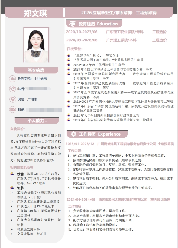 优秀简历 郑文琪