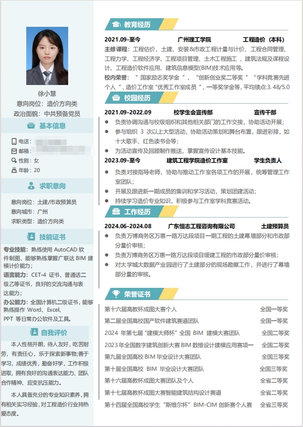 优秀简历 徐小慧