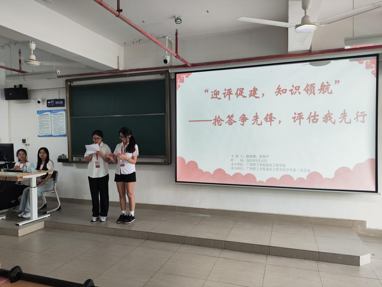 (通讯员:钱永亿)5月15日,为积极响应教育部本科教学工作合格评估的号召,122cc太阳集成游戏成功举办了一场以“迎评促建,知识领航”为主题的学生学习手册知识竞赛。此次活动旨在通过趣味横生的必答与抢答形式,加深学生对校史校情、评估知识及行为规范的理解,营造全员参与、以赛促学的良好氛围。
