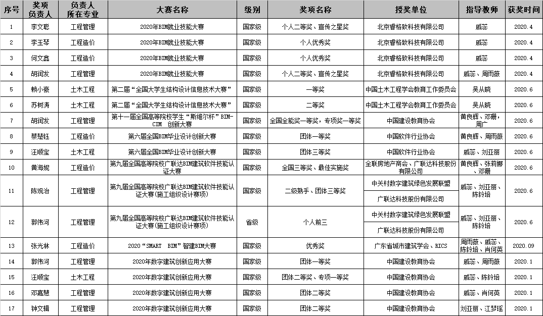 从2020年至今,122cc太阳集成游戏联合4家优秀企业组织承办了122cc太阳集成游戏系列赛事,邀请广州城建职业学院、广东南方职业学院、广东东华职业学院、广东水利水电职业技术学院4所兄弟院校参与,先后成功举办了第一届 “陕建五建杯”建筑信息模型(BIM)技术应用大赛,第二届“碧桂园腾越杯”、第四届南方测绘杯测量技能大赛、第五届“华联世纪杯”造价技能大赛。