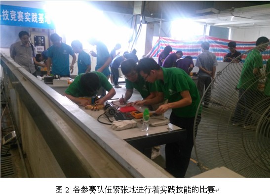 比赛分两阶段进行。第一阶段在比赛地点在美的佛山顺德总部。学生们首先参观了美的空调生产车间,在美的员工细心讲解下,学生们对生产车间有了比较清晰的认识,对空调产品的每一个生产环节,每一道工序都有了一个完整的了解。这些都是学生们平时在课堂上难以接触到和学习到的。他们都感觉增长了许多见识。参观完车间后,进行简单休息后,就开始紧张激烈的技能比赛了,此项内容重点考察学生的动手能力,主要分为两个部分,第一部分是使用万用表、卡尺等工具测量数据,并一一记录好,主要是考察我们对工具的使用熟练程度;第二部分是连接一拖一家用空调机,主要内容有接线,抽真空,充灌雪种(制冷剂)等。通过此项技能比赛,学生们知道了自己的不足,动手能力还不是很强,勉励自己以后要努力培养自己的动手能力。接着,在美的经理的带领下,我们来到美的总部大楼,在大楼展厅,我们看到了许多还没上市的新产品,比如新型全自动多功能压榨机,精美的造型和独特的外观,让学生们大开眼界。他们切切实实感受到科技的魅力和“科技引领未来”的思想。同时还参观了美的历史博物馆,看到美的光辉的发展历程。