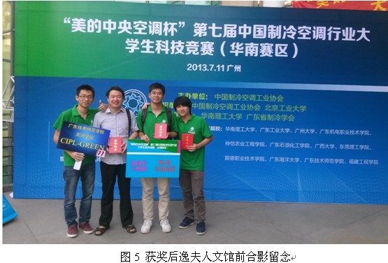 每年7月暑假举行的中国制冷空调行业大学生科技竞赛是由美的公司冠名赞助的高水平科技竞赛活动。有包括清华大学、华南理工大学等众多名校在内的全国80多所高校参赛,参赛队伍的素质高,参赛作品水平高,作品答辩和评分专家都是国内一流的学者。天河学院是全国唯一进入总决赛的独立学院。“CIPL-GREEN”的参赛作品名称是“新型制冷、热水与供暖一体的空调系统研究开发”。本作品突出节能减排的主题,与时代发展要求相呼应,获得专家们的肯定。