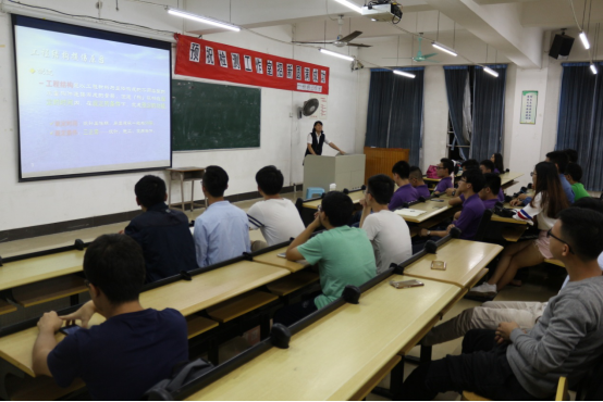 钟老师首先从我国的建筑业的发展历程简介开始,结合案例分析此行业存在的价值及实际检测工程所使用的技术和方法;其次介绍了检测工作室是企业,行业,政府和学校四方合作;以数据说明近3年来土木工程专业毕业学生的就业方向中检测方向的比重逐年增加。检测工作室的成员负责人易振华也发表了演讲,分享了在检测工作室一年中的学习心得体会及所出过的项目成果,感谢钟老师在这一年中的栽培并预祝检测工作室第三届成员招新工作圆满成功。