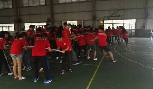 10:00分,在钟书记带领下,全体成员到达体育馆进行户外拓展培训活动之趣味运动会。