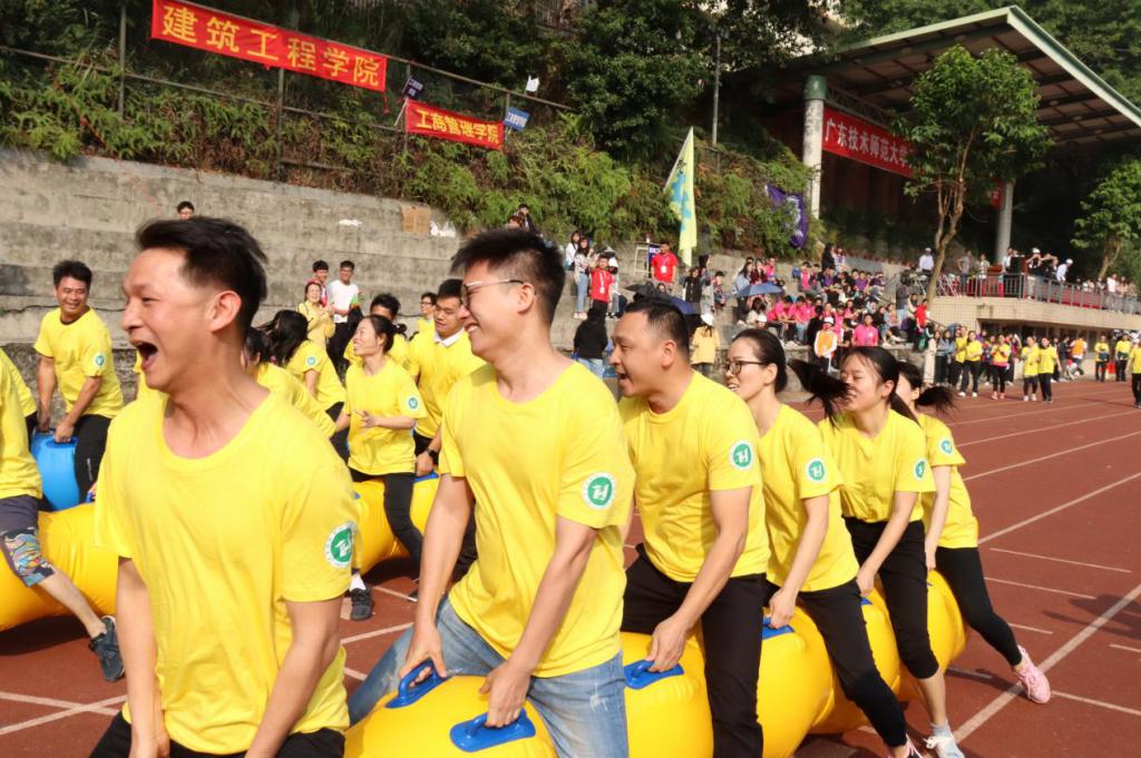 我院党总支副书记黄良辉、詹夏然、邓珊、陈定坤等教师以必胜的信念、顽强拼搏的精神,参加了此次集友谊、竞技、娱乐、锻炼为宗旨的教工毛毛虫接力赛。赛场上,每一位教工笑容满面,精力充沛,朝气蓬勃,遵循比赛 “趣味交流第一,比赛竞技第二”的原则。