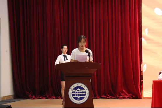 校学生会主席谭仟宣读批复文件