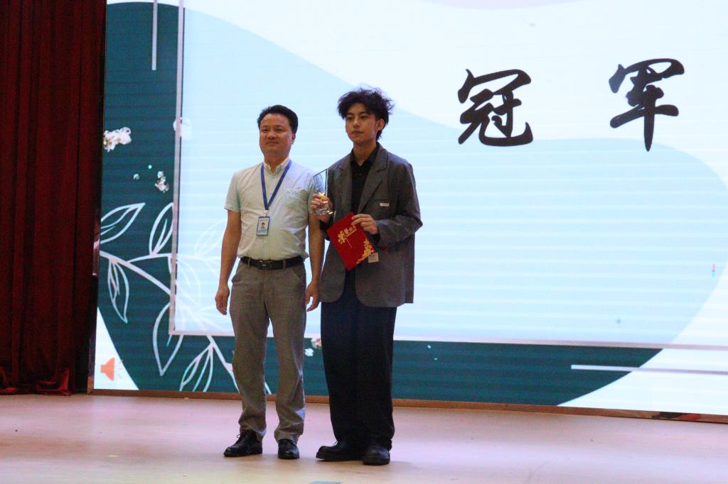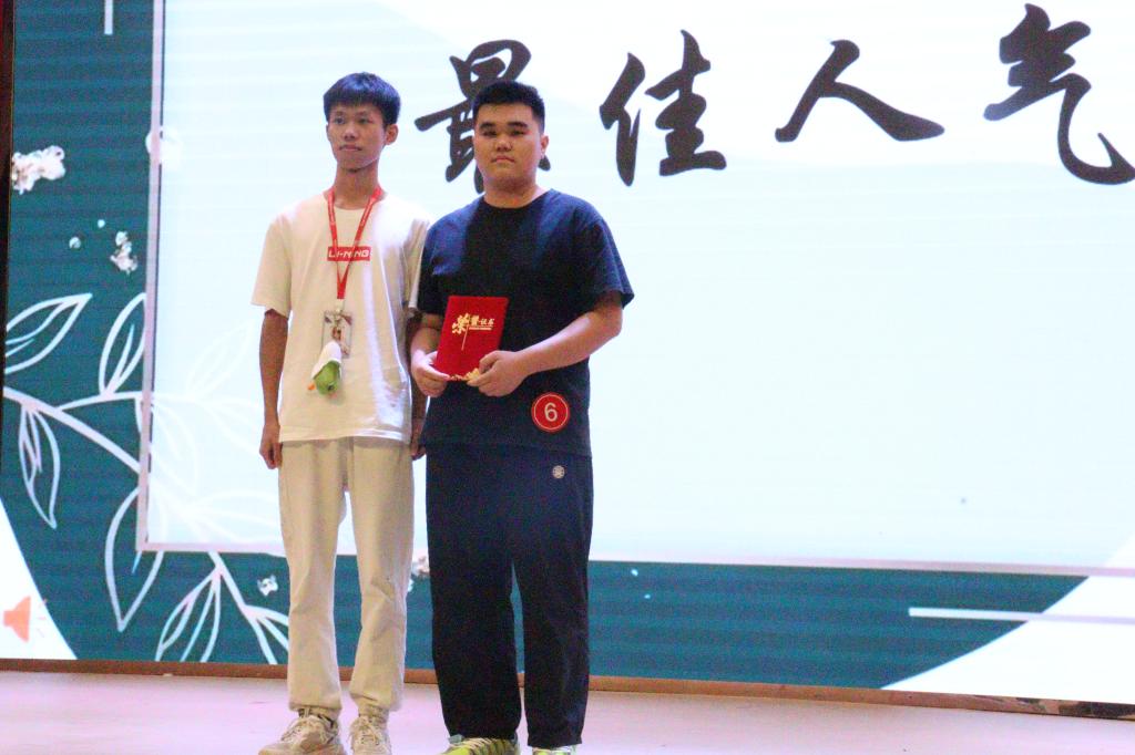 在激烈的竟演过后,我们最终来到了激动人心的颁奖环节,其中吴崇铭同学以歌曲《半岛铁盒》获得本次比赛的最佳人气奖,林玉淇同学以歌曲《必杀技》获得最具特色奖,刘梓晴同学以歌曲《我好想你》获得本次总决赛的季军,江欣谊同学以歌曲《Someone like you》获得本次总决赛的亚军,罗俊柯同学以歌曲《忘记你我做不到》获得本次总决赛的冠军。