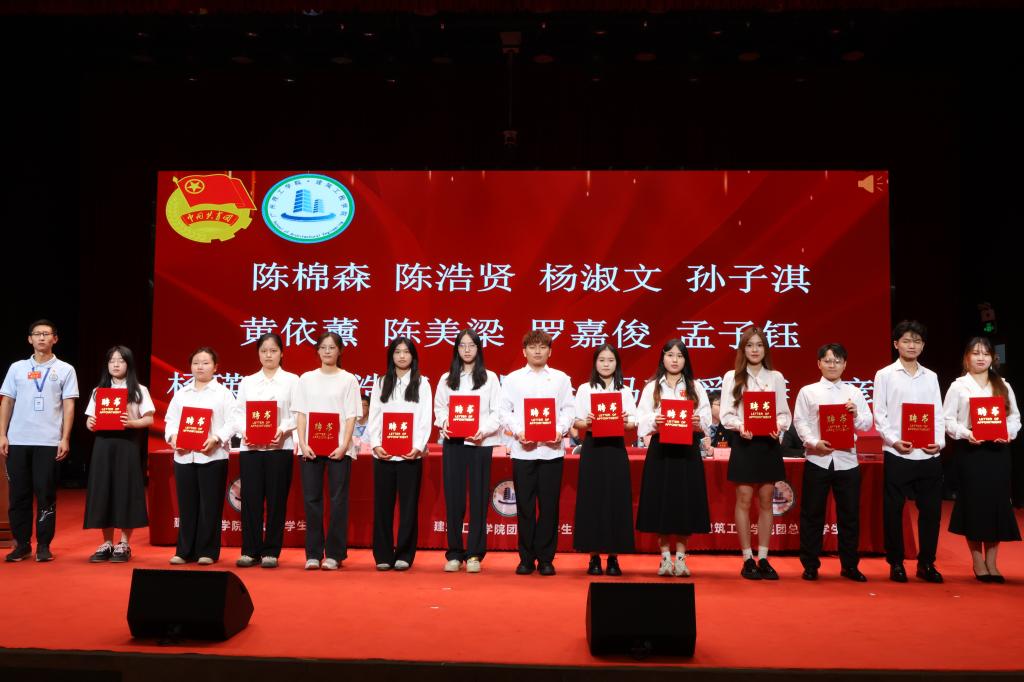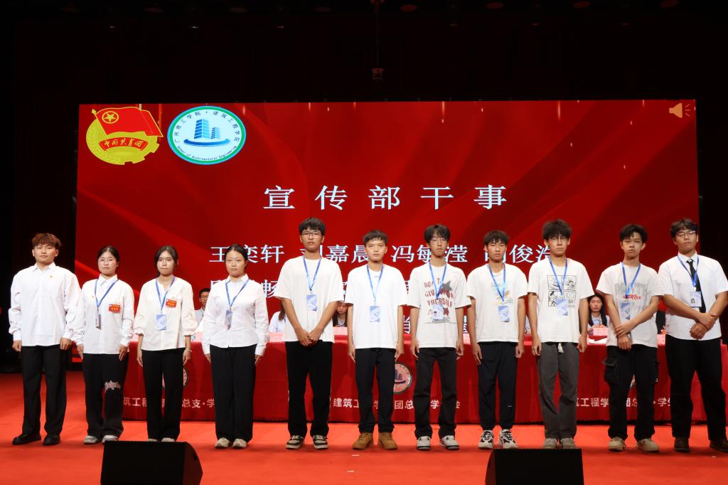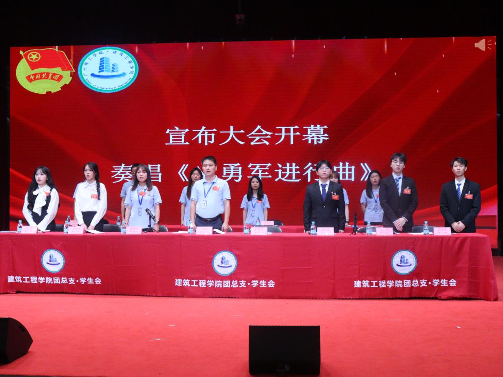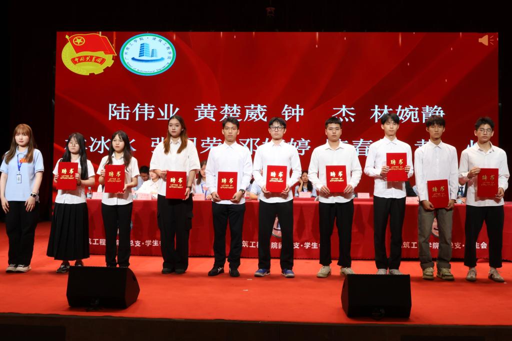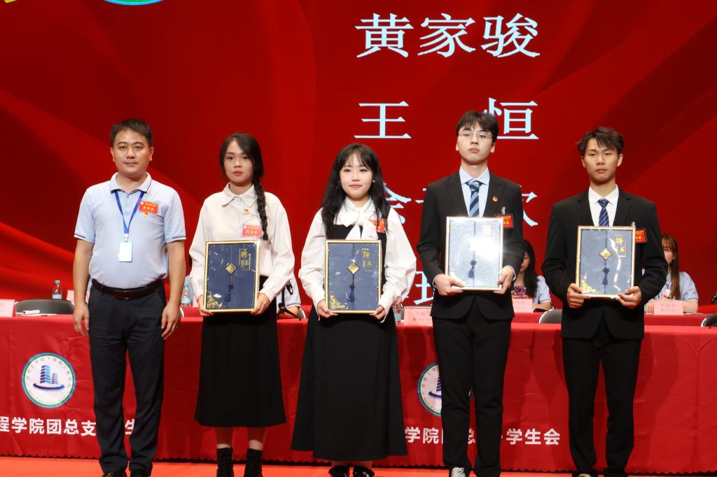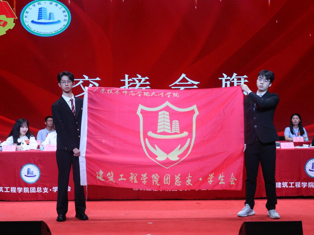 在换届大会中,马冠华书记为122cc太阳集成游戏第四届团总支、学生会副书记及主席团颁发了聘书。同时,马冠华书记等领导、老师对第四届干部颁发聘书及对新任学生干部进行授牌,各部门第四届干部为新干事授牌。新任执行主席周宏茂与上任执行主席王恒进行会旗交接仪式。