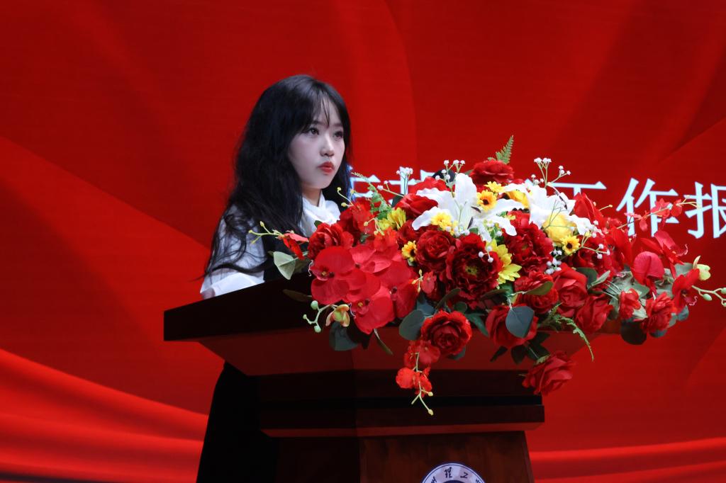 122cc太阳集成游戏副院长杨林青致闭幕词。杨林青副院长对第五次学生代表大会的顺利开展表示十分赞赏,强调此次大会对学院发展的重要意义。她鼓励同学们以大会为新起点,勇担使命,为学院建设贡献青春力量,共同开创更加美好的未来。