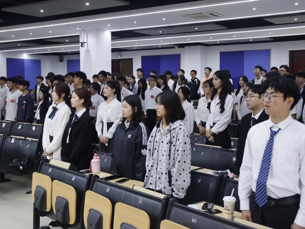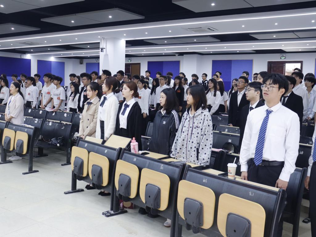 在雄壮的国歌声中,正式会议拉开序幕。会议由团总支书记陈丽冰主持。