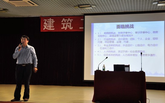 查世伟先生在讲座中主要向大家阐述了目前我国工程造价行业的现状、所面临的机遇和挑战,呼吁在校学子要认识自已处的环境、对现状进行思考,进而作出正确的选择和努力向前。