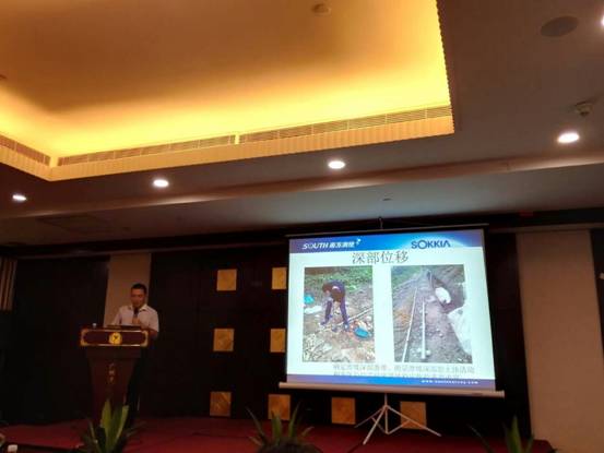 会议正式开始后,首先由上海拓佳丰圣科贸有限公司全国销售总监何小聪作了一个简短的索佳品牌及产品介绍。其后,由上海拓佳丰圣科贸有限公司销售经理张庆元就自动化监测扫描应用作报告,结合语言文字、图片、动画、视频,将“智能测量时代”的主题演绎得淋漓尽致,让嘉宾犹如跟随无人机遨游在信息测量的上空。张庆元经理介绍的基于BIM的智能施工放样测量系统,让我们明晰,此应用一方面结合图纸和BIM模型精确高效的定位放样,实现了BIM对现场实际施工的指导和各方的无缝对接;另一方面通过采集现场实际建造数据更新设计BIM模型,减少各方冲突,减少设计更改拆建,使BIM模型更贴近施工现场情况。接着,南方测绘广州分公司技术总监黄鸿伟对广东省地下工程及深基坑自动化监测系统作了一个详细的介绍。该系统由广州南方测绘有限公司和广州市建设工程质量安全检测中心联合打造,通过大量案例向嘉宾展示该系统实现了地下工程和深基坑工程建设施工时所涉及的位移、倾斜、应变、轴力、水位、视频等多参数的远程在线监测,真正做到监测数据实时采集、工程安全动态预警,最终达到防灾减灾的目的。