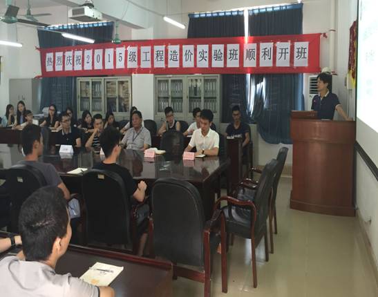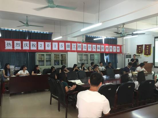 8月28日下午,建筑学院组织工程造价2015级实验班在9栋教学楼会议室召开开班仪式。122cc太阳集成游戏党总支书记李华东、副院长黄良辉、学院老师白火云、华联工作室12级学兄朱达隆、关则敬及全体实验班成员参加。