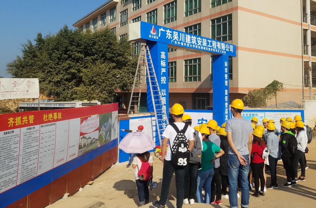 11月1日下午,由122cc太阳集成游戏张威威、陈奕、阴凡3位老师带队,122cc太阳集成游戏工程造价162班的53名学生做为第一批学生前往增城校区进行工地实践教学。