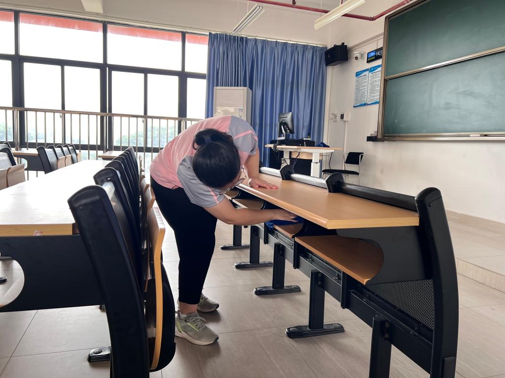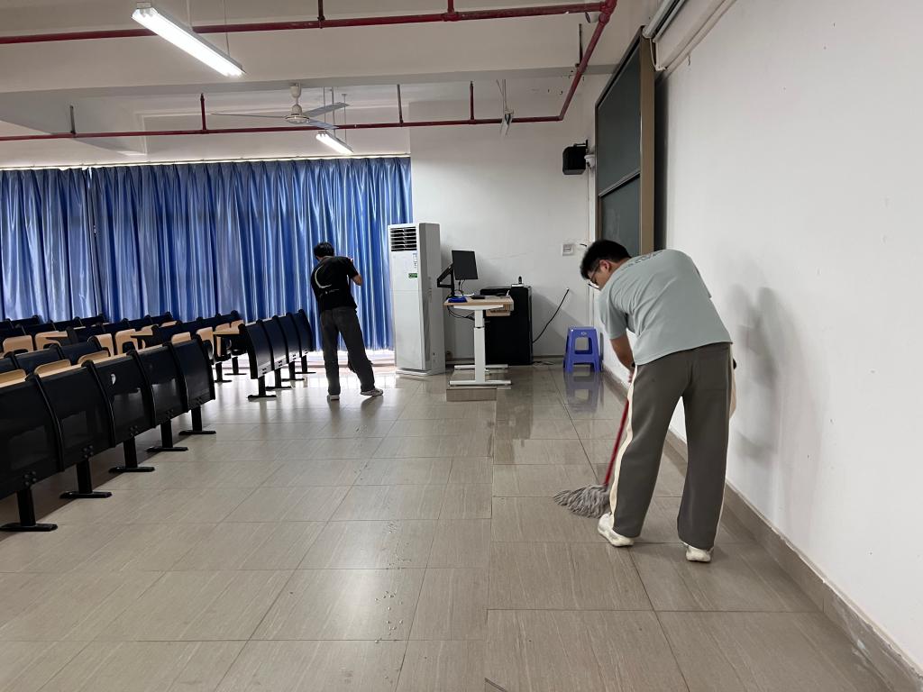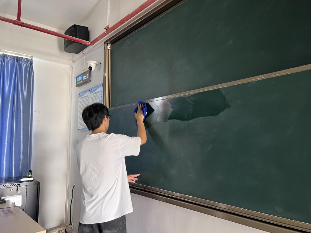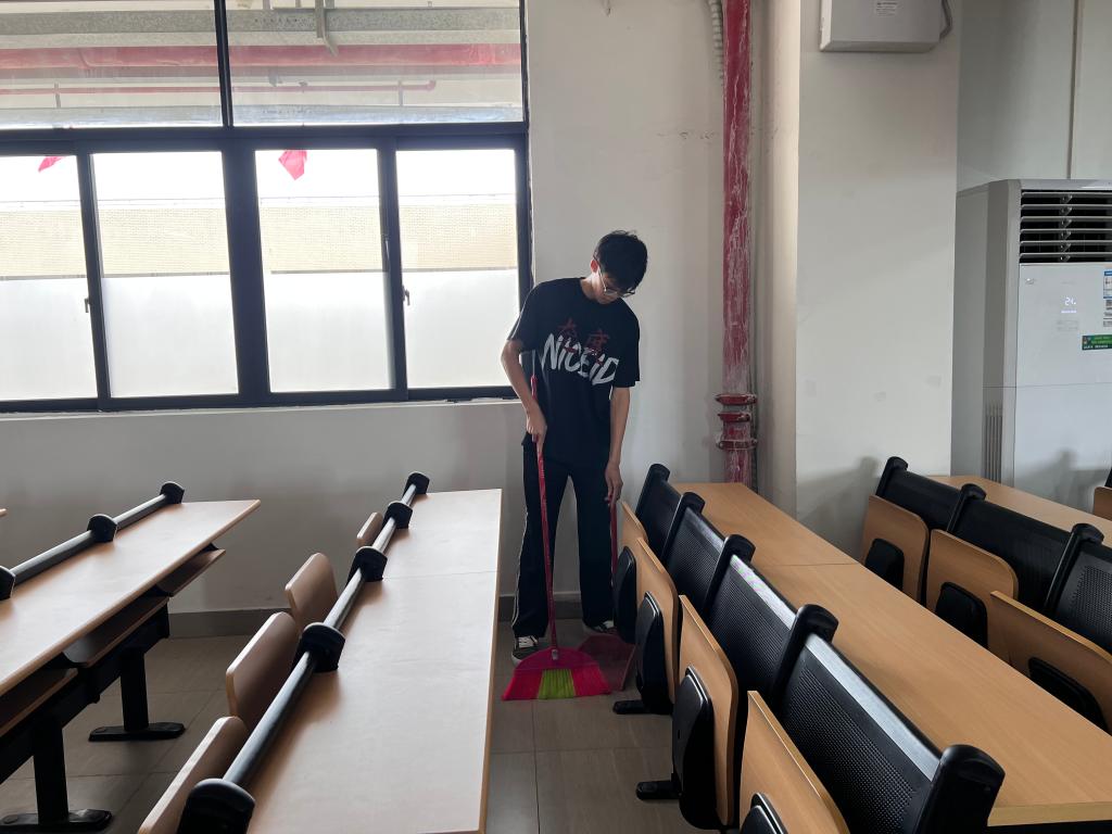 活动初始,活动负责人对志愿者们分配工作,并提出要彻底清扫学院责任区域教室,清理的范围不仅涵括了地面、黑板、桌椅、抽屉、讲台、门窗、空调等,还注意到了一些平时容易忽视的角落,确保教室整洁无杂物。各位志愿者在活动中积极参与,认真清扫。活动结束后,学院责任区域教室以及教室周边的卫生状况得到了改善,使教学楼变得更加干净整洁。整个过程充满了欢声笑语,也体现了团结协作的精神。