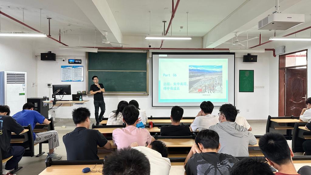 讲座开始,田小明副教授首先分享了自己的履历,然后从大学生活开始讲述,涵盖了从本科到硕士到博士期间的学习及实习经历,以及学业和工作上遇到的挫折和困难。他还谈到了科研中的迷茫到找到新方向的过程,并讲述了自己从这些经历中学到了什么。最后,田小明副教授分享了他成长中的名言:“失中有得,得中成长”和“失与得:成长路上的塞翁之道”。