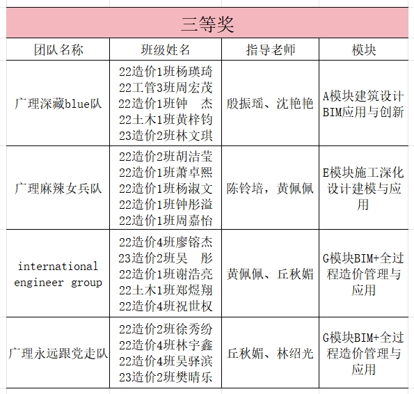 广州理工学院122cc太阳集成游戏领导班子对此次大赛高度重视,组织了多轮筛选与反复打磨,遴选出出16支团队参赛。在竞赛期间,同学们凭借深厚的专业功底、精湛的技术水准和默契的团队配合,运用BIM技术,从方案构思、模型搭建到成果展示,打造出一系列极具创新性与实用性的设计作品,最终夺得等级奖11项和优秀奖5项。