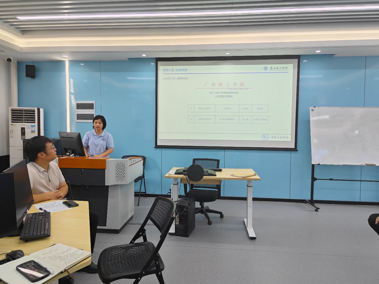 随后,科研副院长李棱雪对本学期进行的科研工作和取得成绩进行了汇报。双创工作方面,我院郑景浩老师和邹伟武、周雨薇老师的团队成功入驻“帽峰创谷”。学科竞赛方面,我院在第十八“高教杯”全国大学生先进成图技术与产品信息建模创新大赛广东省选拔赛取得两个二等奖,11人入选参加国赛。科研方面,2024-2025年我院共进行了7个横向项目,合同经费合计72.8万元。重点实践基地建设方面,我院建设了南方测绘、广州建鋐两个重点实践基地。最后,李棱雪对暑期的工作进行了安排,号召教师们发表高水平论文、申请发明专利、引进横向项目、带领67位学生完成实践实习。