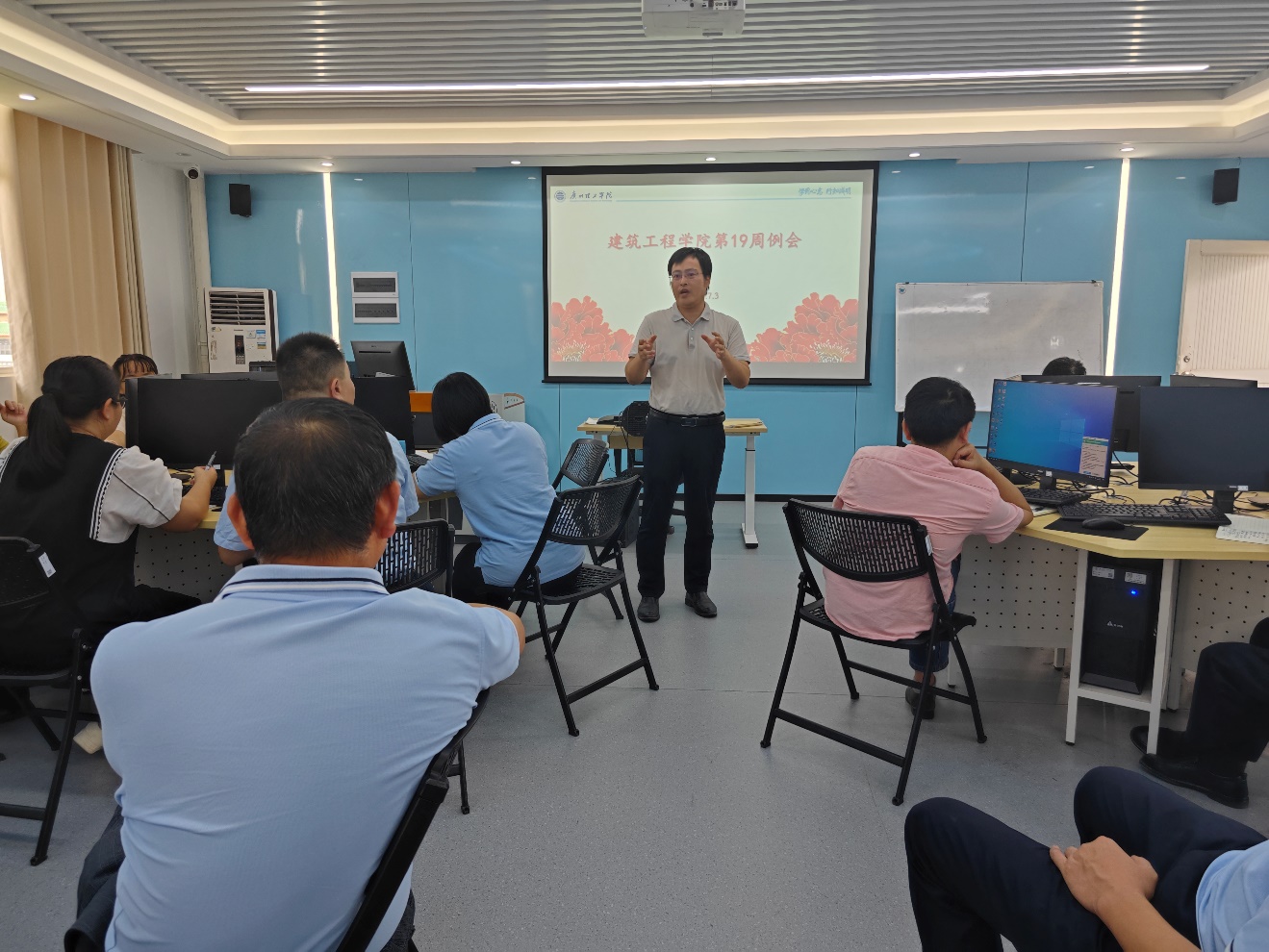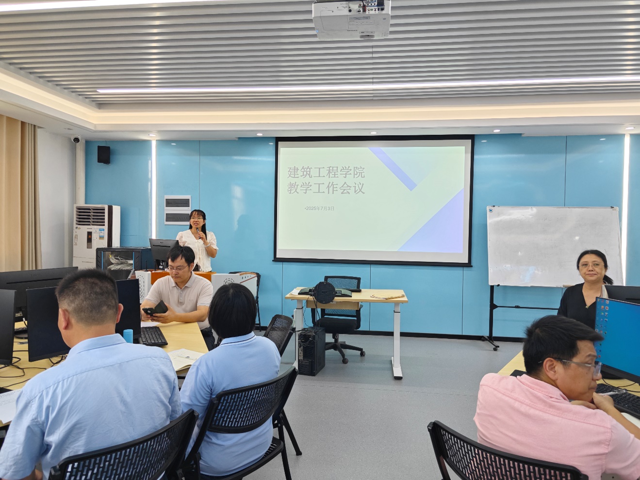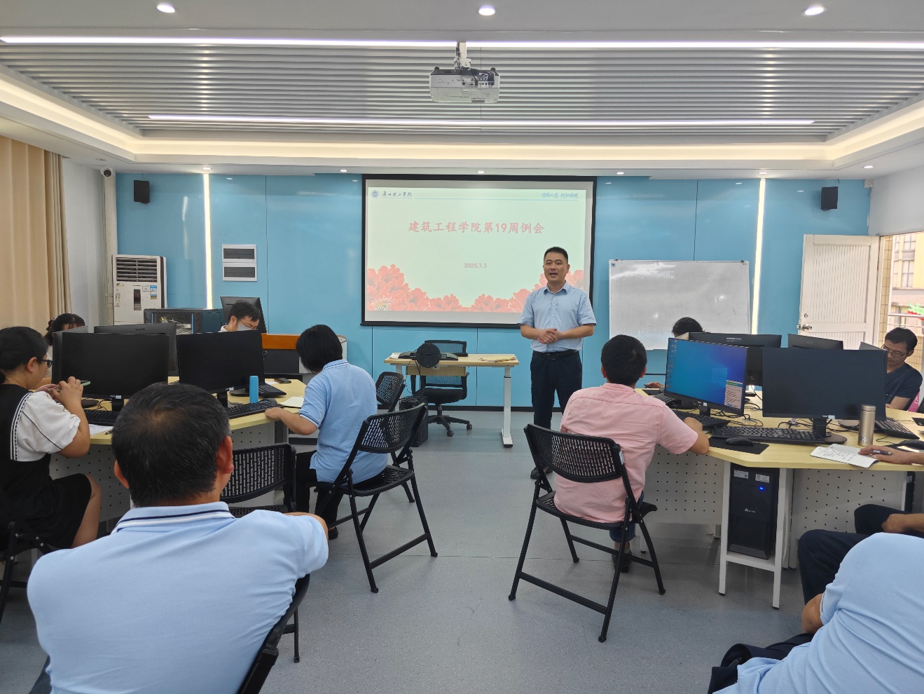 2025年7月3日下午14:30,122cc太阳集成游戏于9栋506召开第十九周工作部署例会,院长符焕昌、党总支书记马冠华、教学副院长杨林青、科研副院长李棱雪及各系部主任出席会议,全院教职工参会。会议围绕教学资料、毕设整改、评估迎检、科研任务、就业情况等重点工作展开部署,为后续工作进一步明确方向。