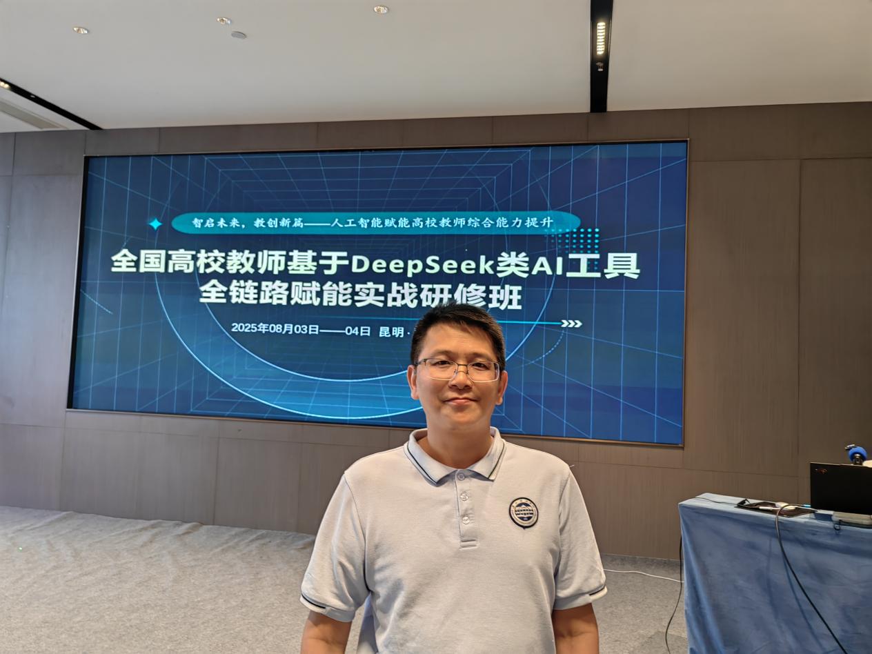 8月3日至4日,由北京华思培教育科技院主办、华南师范大学赖国雄老师主讲的“智启未来·教创新篇——全国高校教师基于DeepSeek类AI工具全链路赋能实战研修班”在昆明成功举办。本次研修班旨在推动人工智能技术与高等教育的深度融合,助力高校教师掌握前沿AI工具,提升数字化教学能力。广州理工学院122cc太阳集成游戏积极响应教育现代化号召,选派骨干教师陈铃培参加此次研修,与全国教育届同仁共同探索AI赋能教学的新模式。