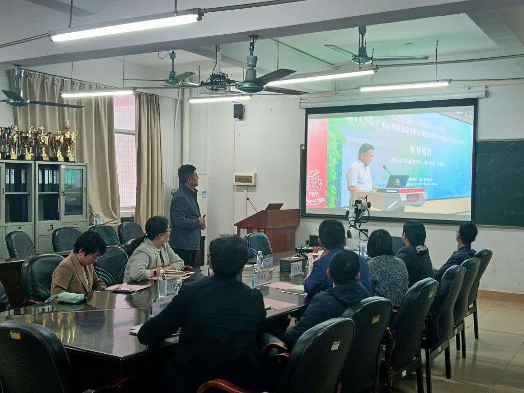数字教育BU院校教育事业部渠道总监李宁在后续发言中表示,对我院的热情接待表示诚挚感谢;数字教育BU院校渠道管理部高级资深专家朱飞详细介绍了广联达科技股份有限公司的发展概况、BU 院校教育事业部的核心业务及在院校教育领域的资源优势,重点强调了数字化转型背景下建筑行业对人才培养的新要求。介绍了厦门工学院在近期准备合格评估中产业学院的建设和专业创新人才培养的新思路并表达了与我院携手推进数字教育落地、共育行业紧缺人才的积极意愿。