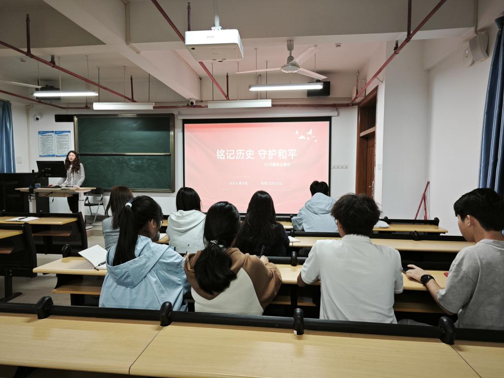 会上,肖少莹同志系统讲解了国家公祭日的由来,深入阐述了其设立的目的、核心意义与历史背景。她强调,全体同志要以史为镜、以史明志,深刻领会设立国家公祭日背后所体现的历史自觉与时代使命,自觉肩负起 “三维责任”:守护历史记忆,矢志复兴大业。随后,全体同志共同观看学习视频。通过视频学习,同志们深切缅怀遇难同胞,进一步筑牢了铭记历史、珍爱和平的思想信念。