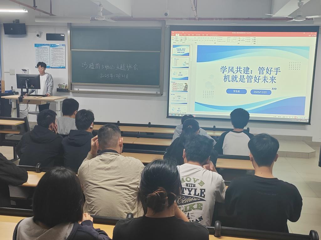 为进一步规范课堂教学秩序,营造专注高效的学习氛围,培养学生良好的学习习惯,筑牢学风建设根基,我院于12月21日晚开展“管好手机就是管好未来”学风建设主题班会。班会由各班辅导员与班长共同主持,全体同学积极参与。