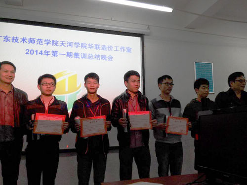 其次,华联造价工作室负责人黄良辉老师宣布2013年华联造价工作室成员在集训中表现优秀的名单,吴总监为优秀成员颁发证书及奖品。接着,黄老师对大家提交的集训成果进行点评,并根据成果文件的“完整性”、“准确性”等考核指标,公布第一期集训成绩排名。其中第三小组在第一阶段集训中获得第一名,第八小组获得第二名,第二小组获得第三名。随后,第二期大二与大三成员代表上台发表集训感言,对此次集训发表自己的看法,均表示在华联造价工作室收获超出预期的想像。