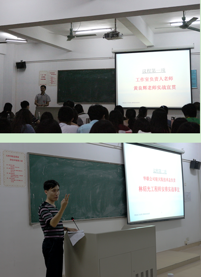 华联公司驻我院技术总负责林绍光安排实战具体事宜。林工结合自身多年工作经验与工作室宗旨就工作室第三期项目实战的展开过程与实战目的、项目的质量标准等,并以“在战斗中成长,在艰苦中奋斗”结束发言。