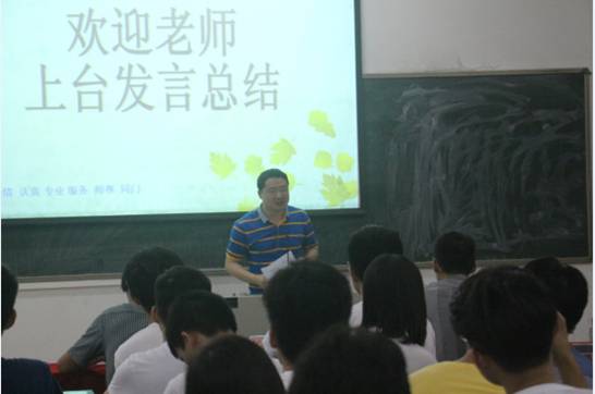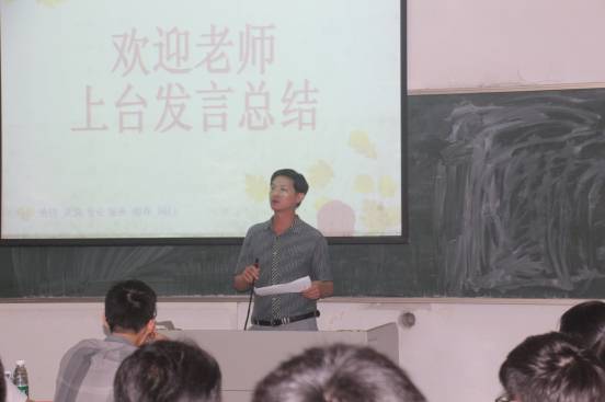 随后,黄良辉副院长为比赛做出点评。他首先感谢台前幕后的工作人员,参赛队伍以及评委老师的辛勤付出,并强调类似的比赛是顺应学校学分制改革条件下,完善多样化、多元化、个性化人才培养方案而举办的活动之一,以后还会有更多与学分制挂钩的比赛。紧接着,就PPT制作与演讲方面周广主任为参赛班级提出了良多建议。