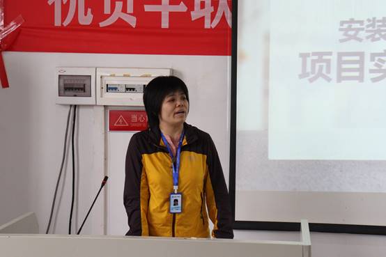 指导老师丘秋媚发言,丘老师表示在未来就业方向上,安装的就业前景良好,鼓励同学们多参与实践,多练习项目,为以后的就业打好基础。