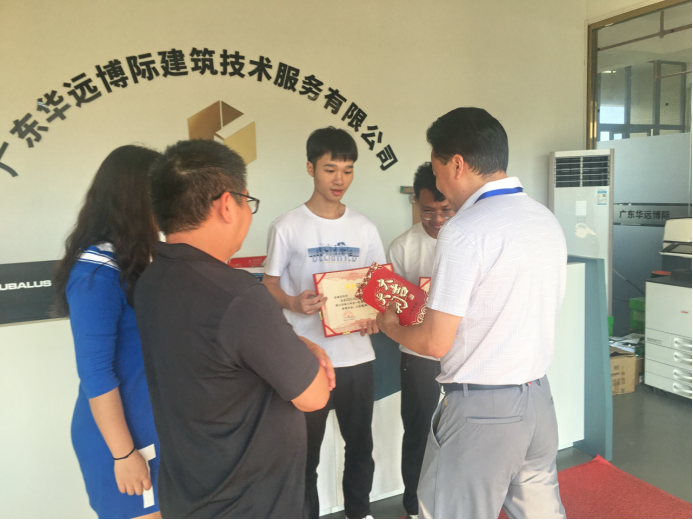 (通讯员:李雪平)10月31日,广州理工学院驻校企业合作工作室宣布为在该公司锻炼的学生颁发奖学金,以表彰他们在工作期间展现出的卓越能力和勤奋精神。广州理工学院与广东华远博际建筑技术服务有限公司(简称华远博际公司)联合成立的校企合作企业工作室在我校工程楼8楼为我校122cc太阳集成游戏取得优异成绩的学生发放荣誉证书与企业奖学金。“华远博际公司”总经理王日会、办公室主任陈惠芳,广州理工学院122cc太阳集成游戏党总支副书记阴凡、土木工程系李雪平老师、学生吴健荣、李坚出席会议。
