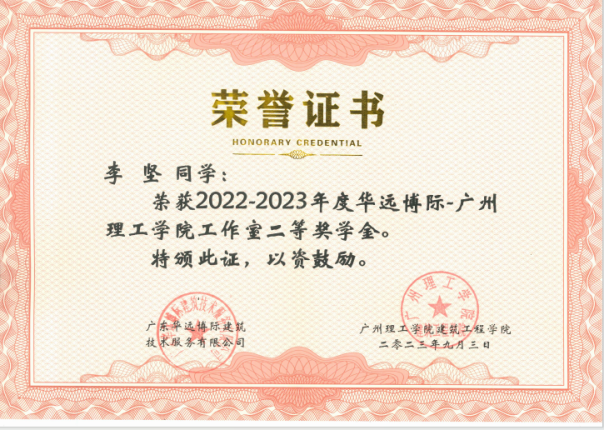 李坚同学获得二等奖学金