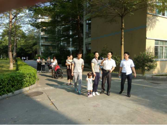 校长助理伏焕昌带着毕业生一行参观校园