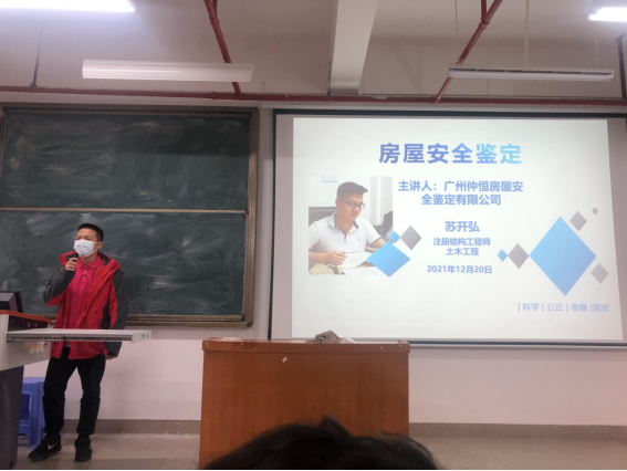 12月20日,校企合作单位广州仲恒房屋安全鉴定有限公司专家进校在13栋409室,向我院学生开展房屋安全鉴定认知培训,此次培训旨在教授同学们鉴定相关规范及操作。我院土木工程专业的师生代表、汇建检测工作室、鉴定与加固改造工作室成员参加了此次培训。