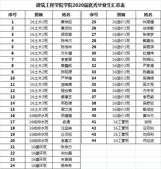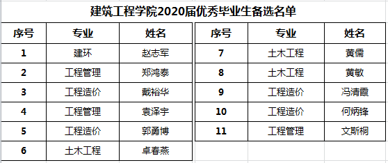 我院关于公示2020届优秀毕业生名单的通知