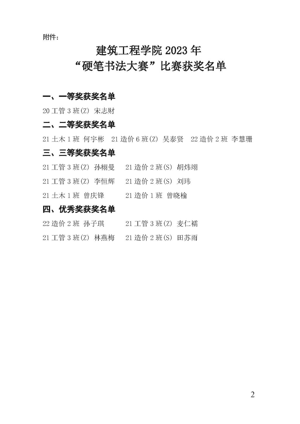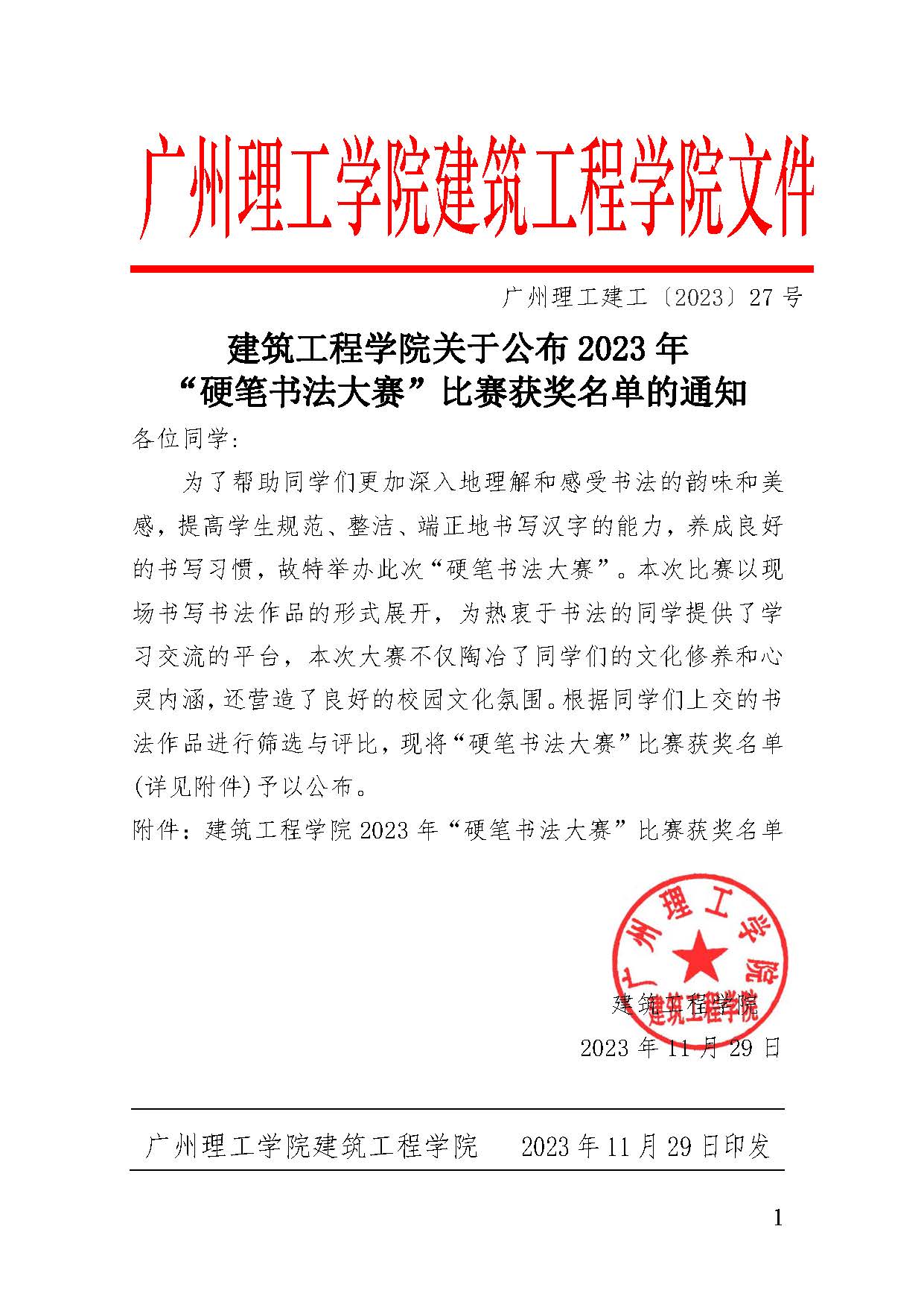 广州理工建工〔2023〕27号-122cc太阳集成游戏关于公布2023年“硬笔书法大赛”比赛获奖名单的通知