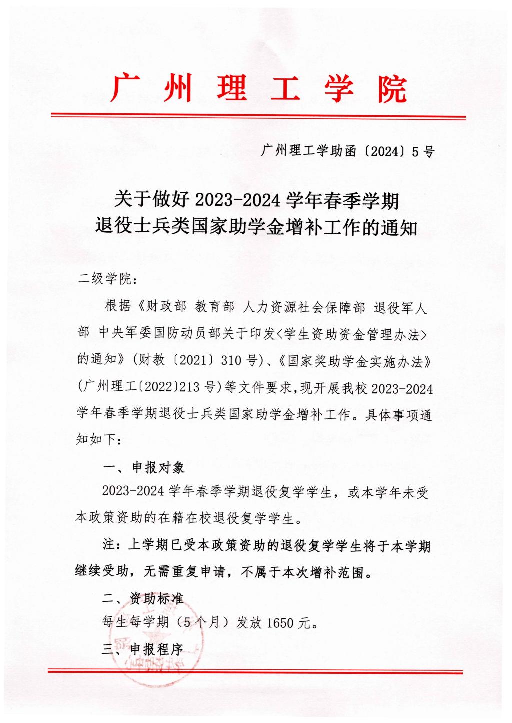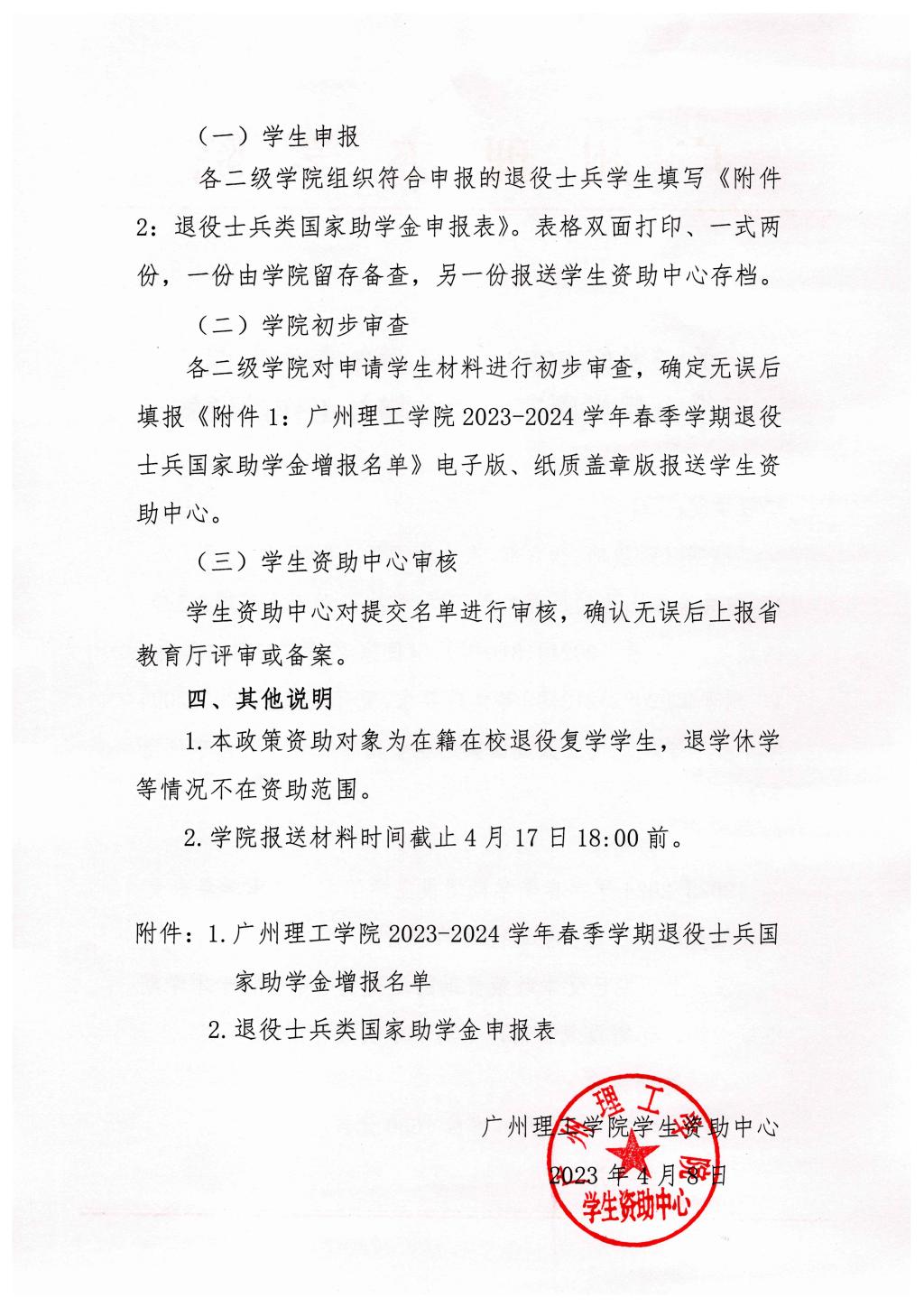 关于做好2023-2024学年春季学期退役士兵类国家助学金增补工作的通知