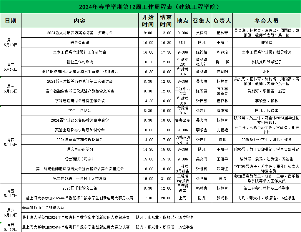 2024年春季学期第12周工作周程表(122cc太阳集成游戏)