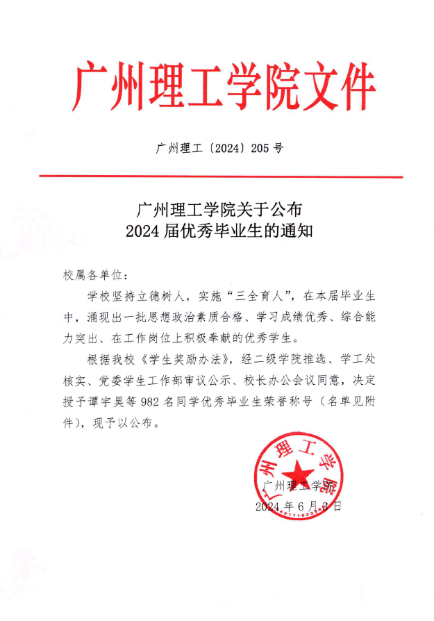 关于公布2024届优秀毕业生的通知
