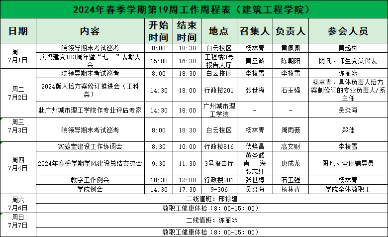 2024年春季学期第19周工作周程表(122cc太阳集成游戏)