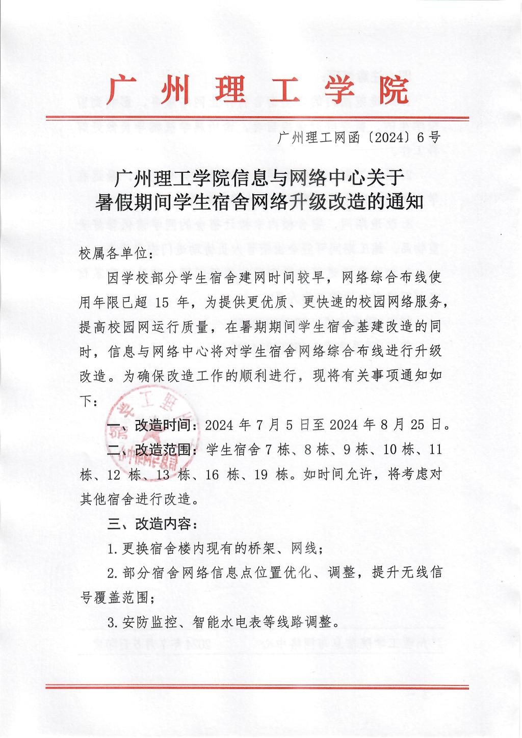 关于暑假期间学生宿舍网络升级改造的通知