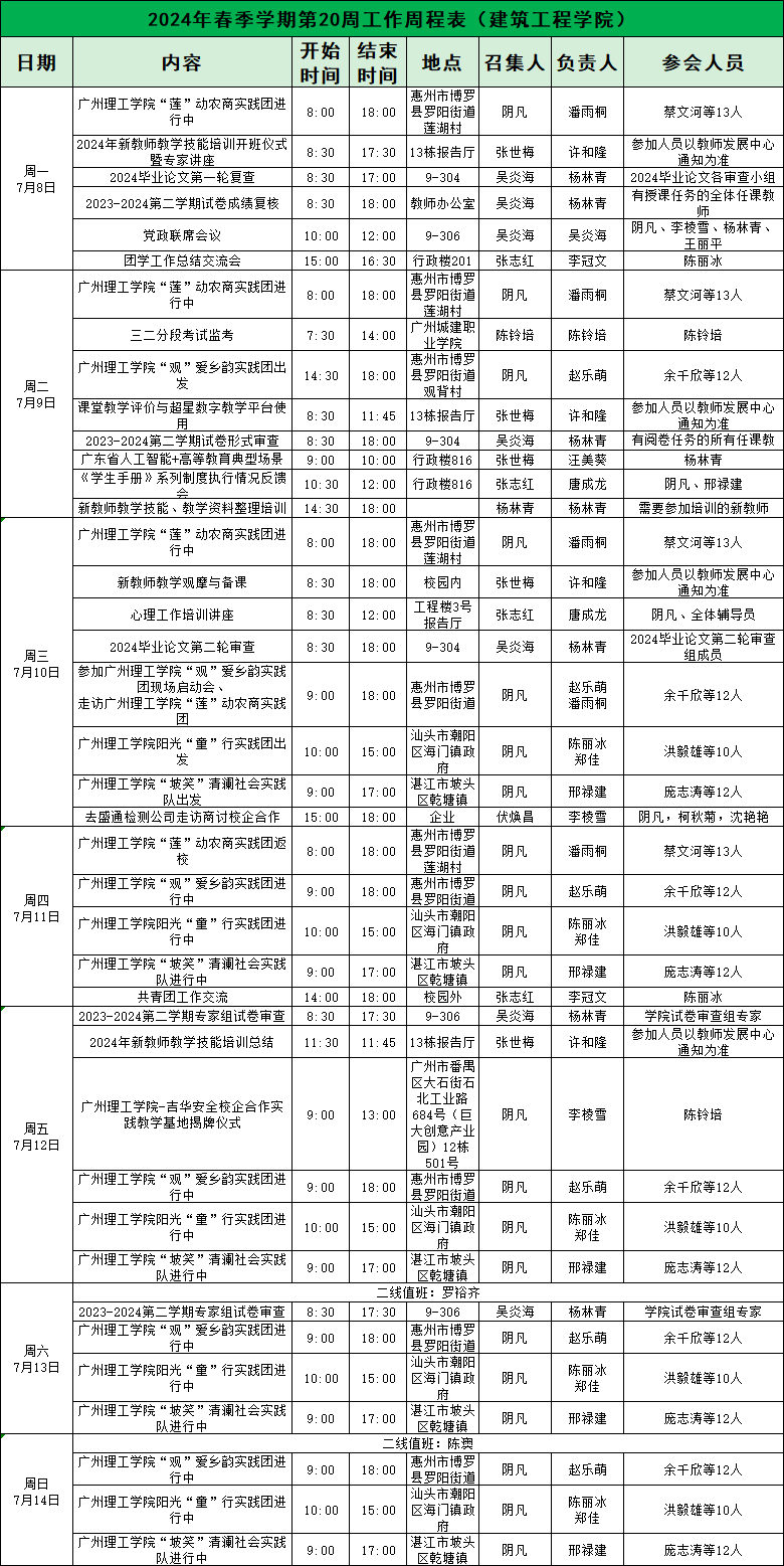 2024年春季学期第20周工作周程表(122cc太阳集成游戏)