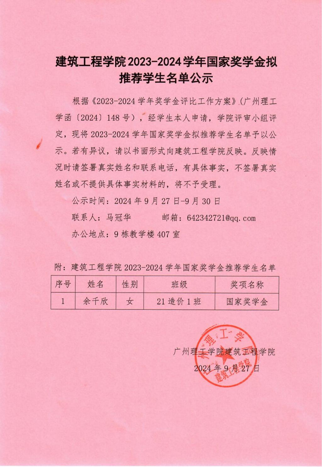 122cc太阳集成游戏2023-2024学年国家奖学金拟推荐学生名单公示