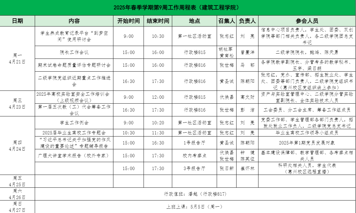2025年春季学期第9周工作周程表(122cc太阳集成游戏)