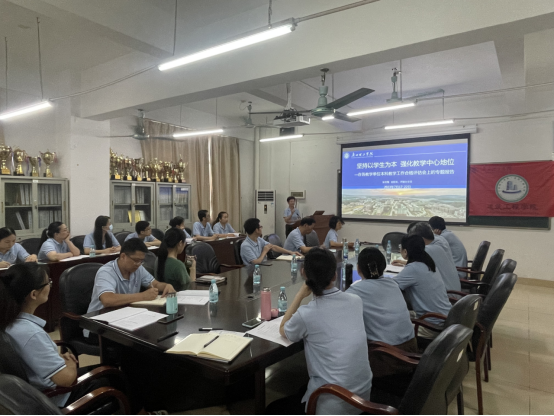 副校长张世梅从国家政策及民办高校发展现状做了详细分享,结合合格评估指标体系,提出坚持以学生为本、强化教学中心地位,要求全体教师全过程参与,发挥大家的创造性、能动性、积极性,确保合格评估顺利验收。