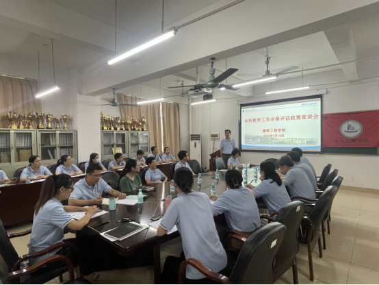 7月18日,122cc太阳集成游戏在9栋306召开本科教学工作合格评估政策宣讲会,副校长张世梅、评建办常务副主任陈英征作评建工作专题报告,学院全体教职工参会,会议由吴炎海院长主持。