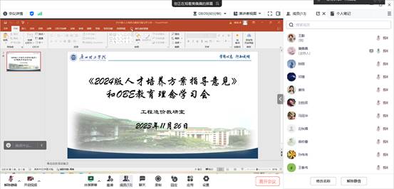 会议期间,工程造价教研室各位老师积极发言交流,并表示将团结协作,共同高质量完成2024版人才培养方案的编制工作。