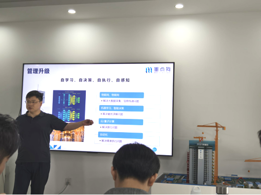 墨点狗公司赵祺总经理对我校师生的到来表示热烈欢迎,他从我国的装配式建筑发展过程进行讲述,对墨点狗公司在数字化数字设计,数字化工厂,数字化工地,数字化企业的概念进行讲解。同学们听得津津有味,纷纷表示受益匪浅。